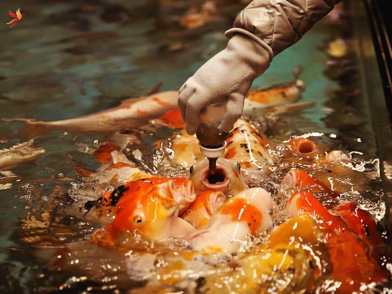 غذا دادن به ماهیهای کوی (کپور زینتی) با شیشه شیر یکی از لحظات بهیادماندنی بازدید است. در فرهنگهای ژاپن و چین، این ماهیها نماد تلاش، امید و خوشبختی هستند.