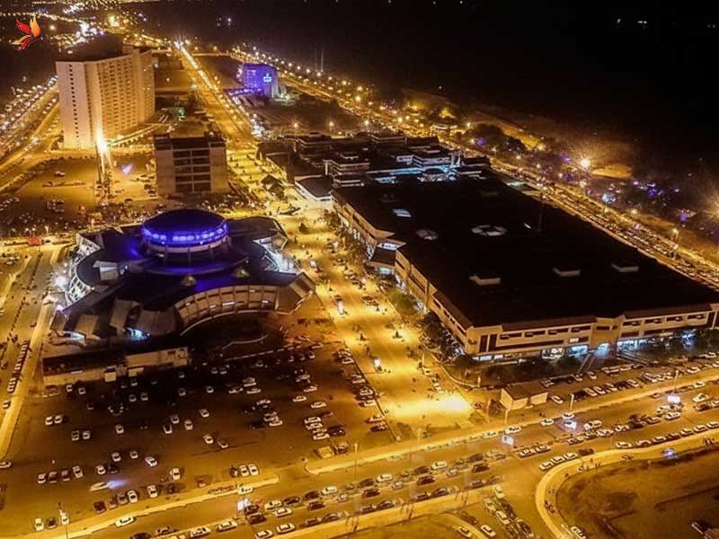- برند سنتر: مرکز خرید مدرن با فودکورت چند غرفهای و محوطه روباز با منظره دریا.