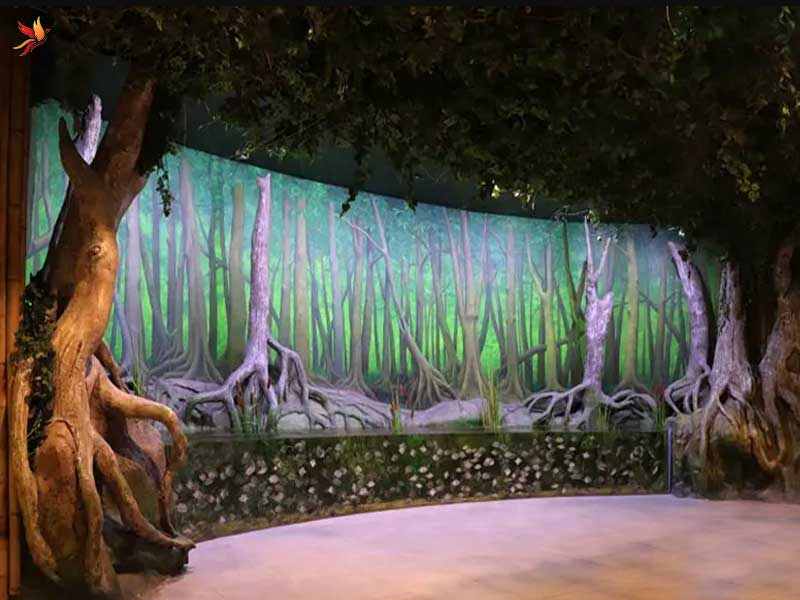 اینجا یک «آمازون کوچک» در شمال ایران است. با دکور جنگلهای بارانی و المانهای بصری خاص، گونههای بومی مانند سفرهماهی آب شیرین، طوطیماهی و اسکار را میبینید. علاوهبر آن، ماهیهای پنگوسی از جنوب شرق آسیا و گونههایی از دریاچه مالاوی آفریقا نیز در این بخش نگهداری میشوند.